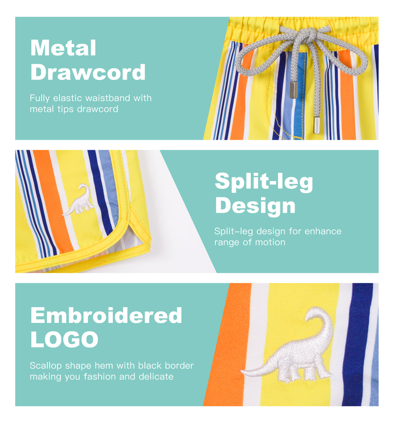 Women's 2.5" Stripe Yellow Quick Dry Boardshorts